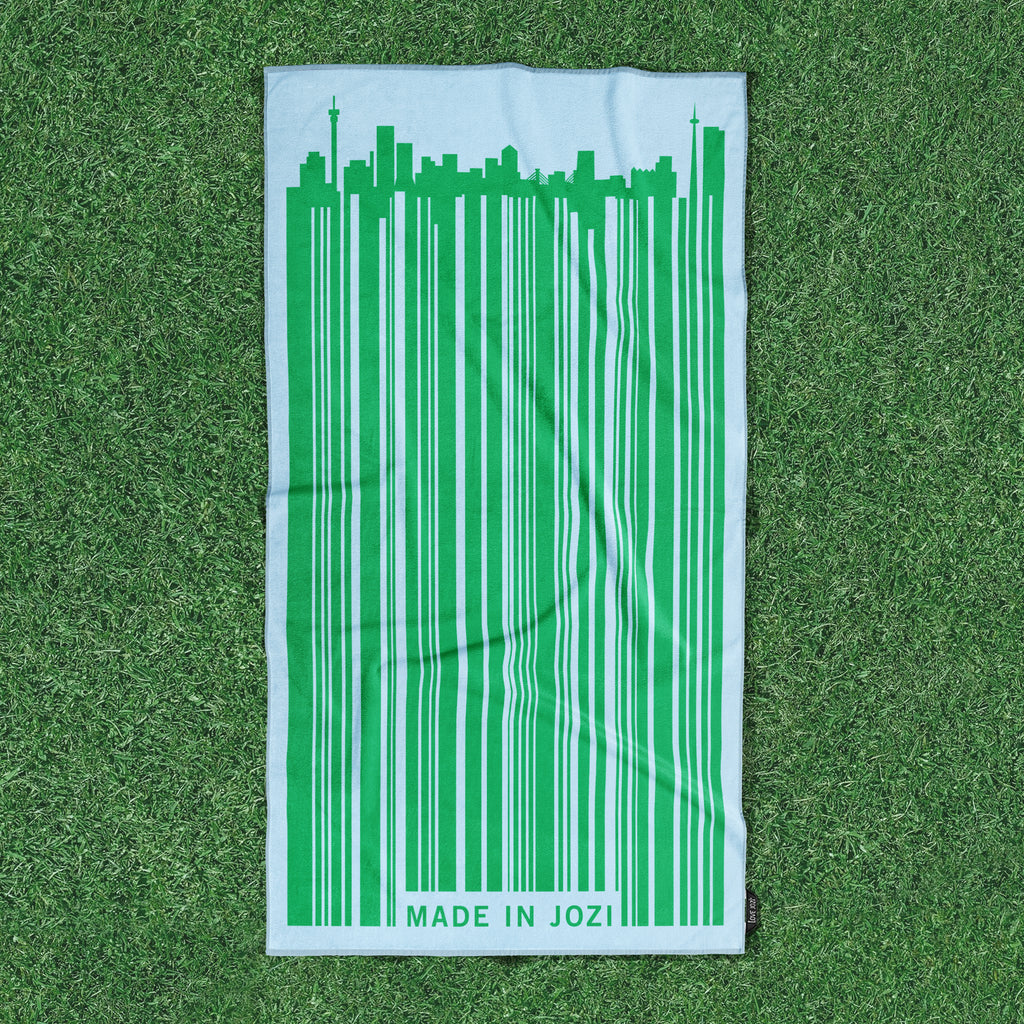 Our MADE IN JOZI promise was first a barcoded t-shirt, then a set of bookends, and now an elongated swimming towel.