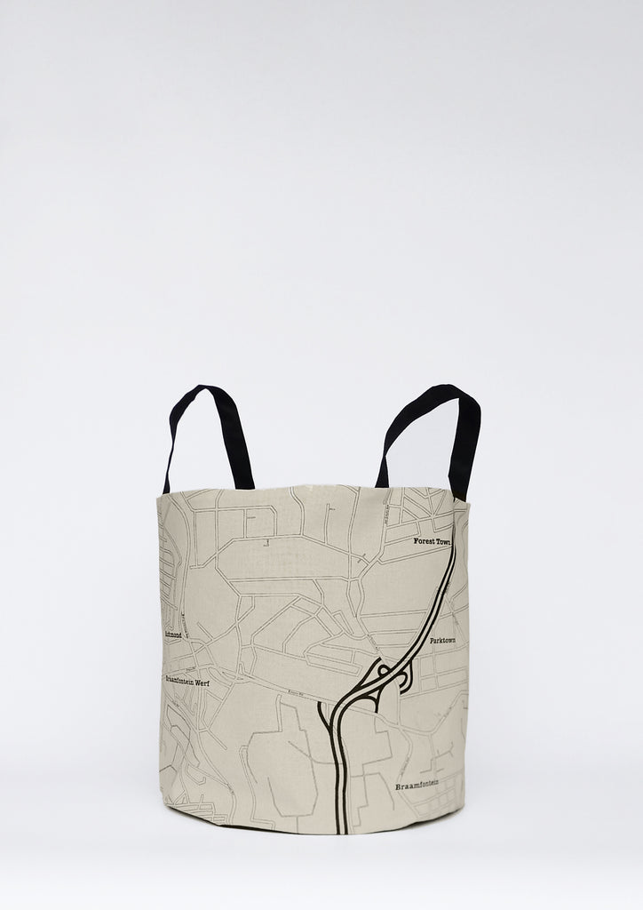 The CityMap BucketBag features a map section of the streets and highways of downtown Johannesburg and the surrounding suburbs. Part of Love Jozi's ongoing exploration of the city through cartography.