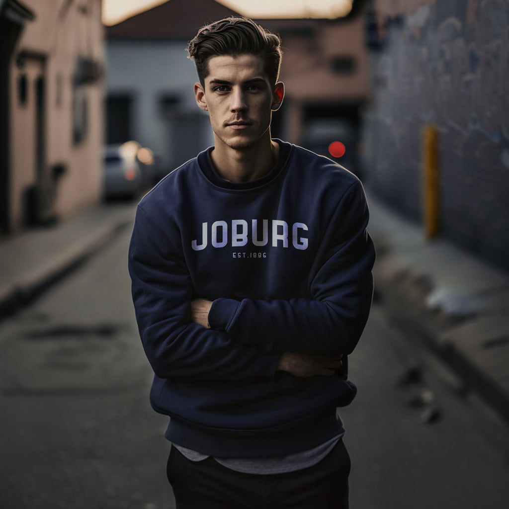 Joburg, established 1886. Simply saying it as it is, on a classic sweater.