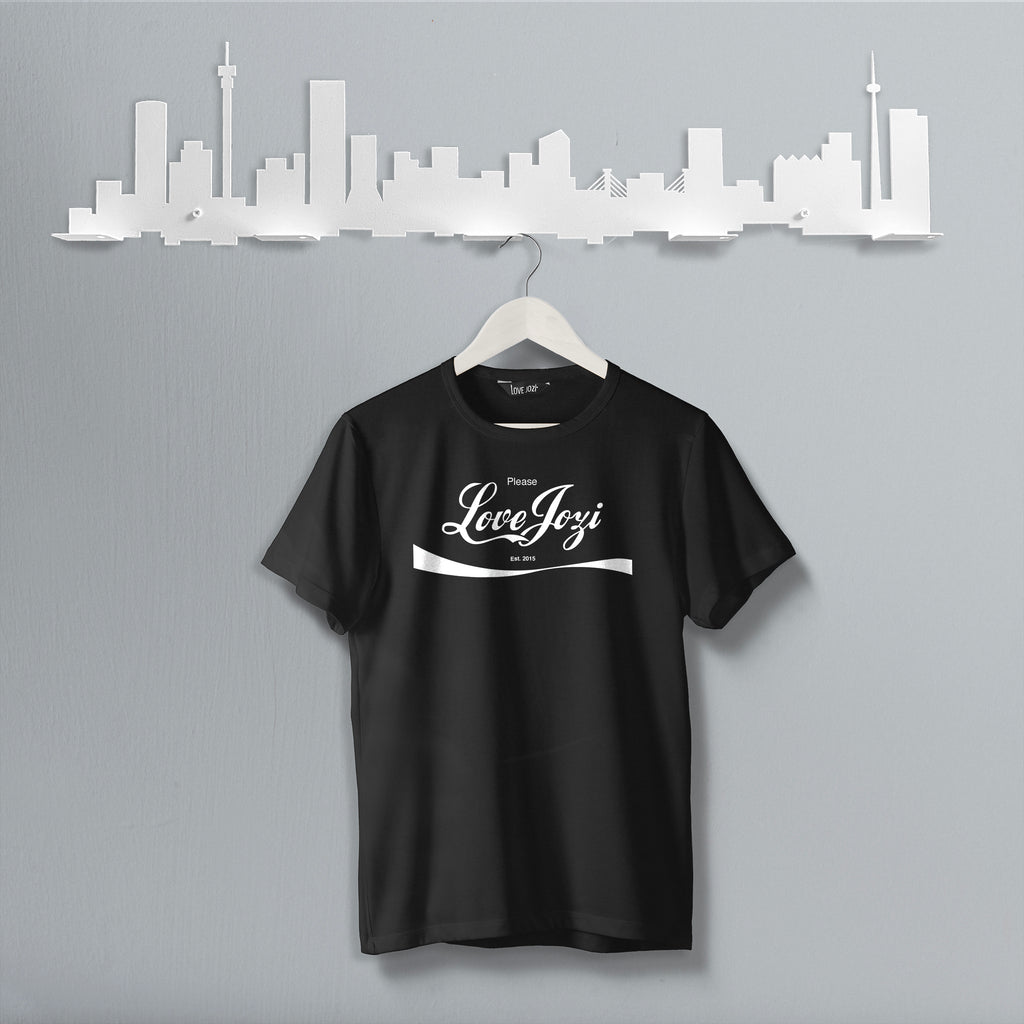 A Coca Cola logo spoof t-shirt, asking you nicely to please love Jozi.